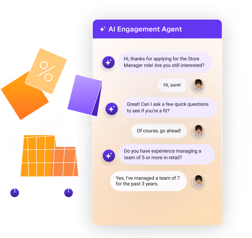Voice and text AI agents pre-screen candidates and schedule interviews - across languages and channels, 24/7.