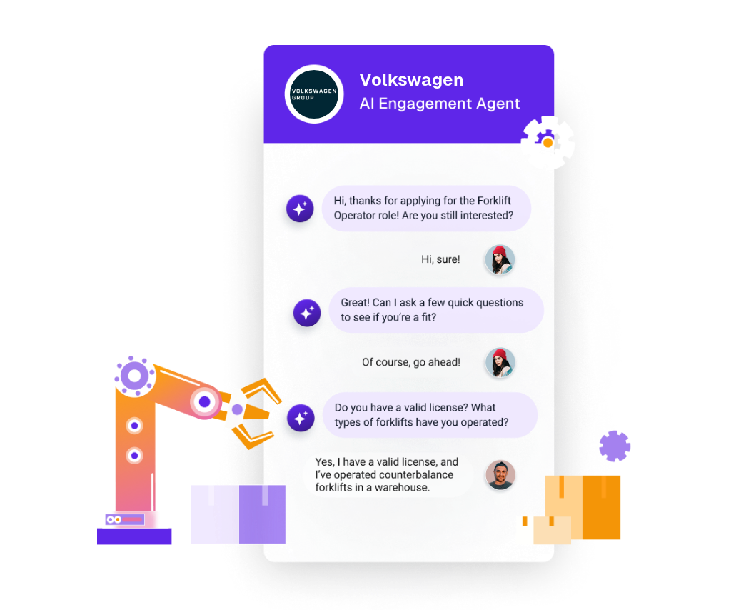 Voice and text AI agents pre-screen candidates and schedule interviews - across languages and channels, 24/7.